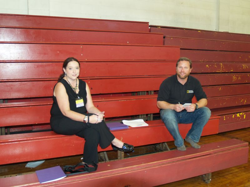 Tama Nunnelly, a middle school teacher from Guntersville Middle School and Bo Garrett from Highland Middle School in Birmingham, presented an interactive session at Tuskegee Institute Middle School. Everyone took off their shoes and found cities and places in Africa using a huge map of the continent of Africa. The kids expressed their appreciation as each new fact and feature of the African continent was revealed. Mr. Garrett skillfully related historical events in Africa to events in the United States and especially the state of Alabama and the cities of Birmingham and Selma, as well as the parallels between Nelson Mandella and Dr. Martin Luther King, Jr.
